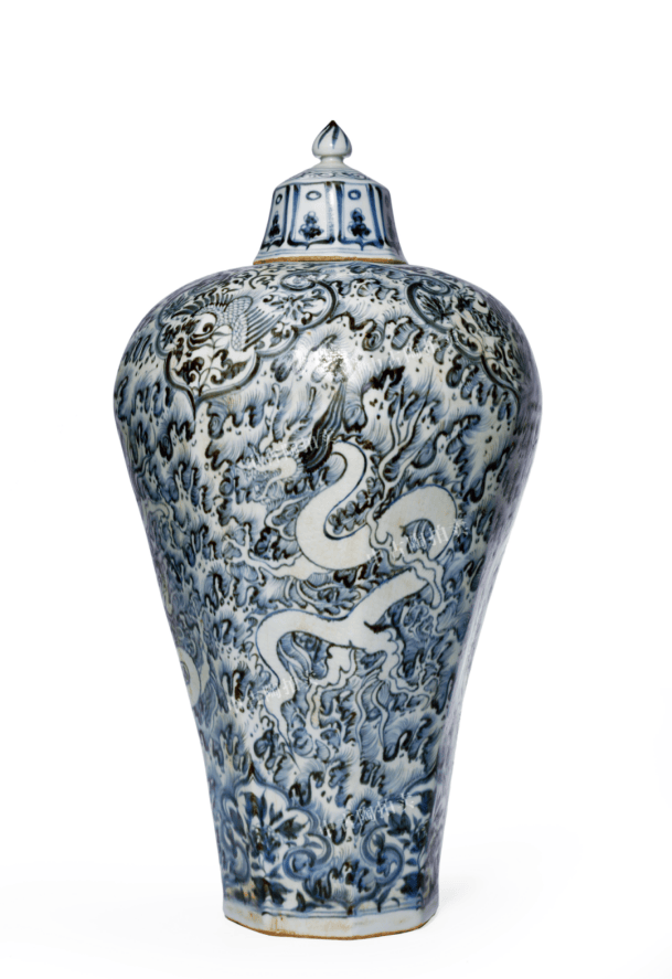 (元 青花海浪留白剔刻龙纹八棱带盖梅瓶 成交价:RMB 14,030,000)