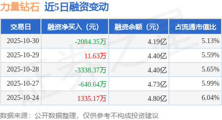 证券之星消息,10月30日,力量钻石(301071)融资买入1.38亿元,融资偿还1.58亿元,融资净卖出2084.35万元,融资余额4.19亿元,近20个交易日中有14个交易日出现融资净买入。