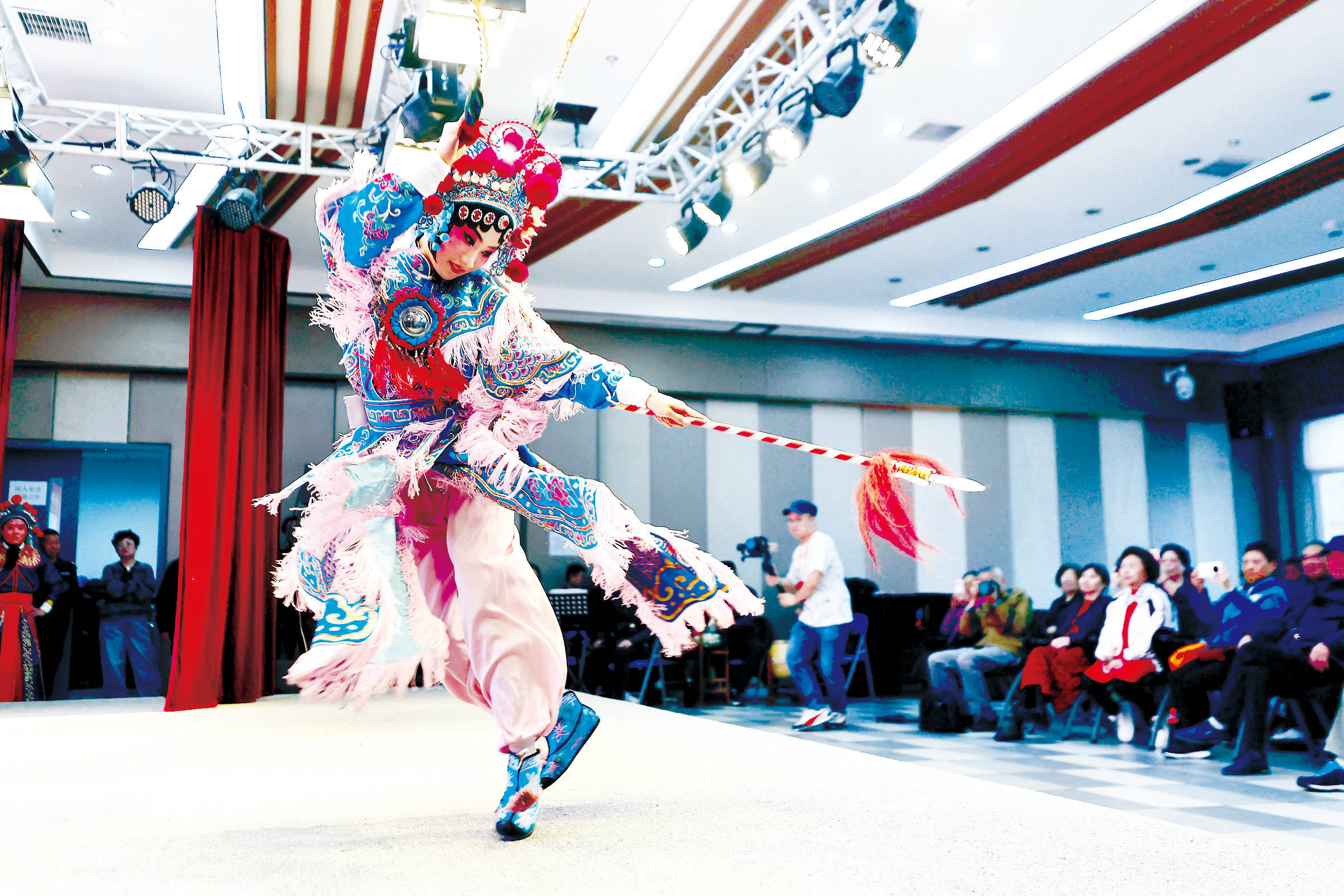 10月20日,作为第十四届中国艺术节惠民活动,山东省京剧院的艺术家小分队来到四川省成都市华成区文化馆,为当地社区群众表演了京剧《扈家庄》片段。