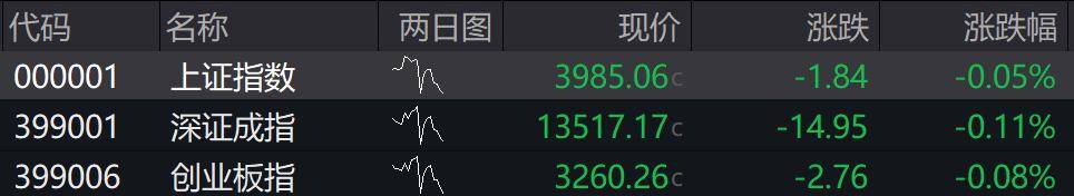 沪指跌0.05%,深证成指跌0.11%,创业板指跌0.08%。
