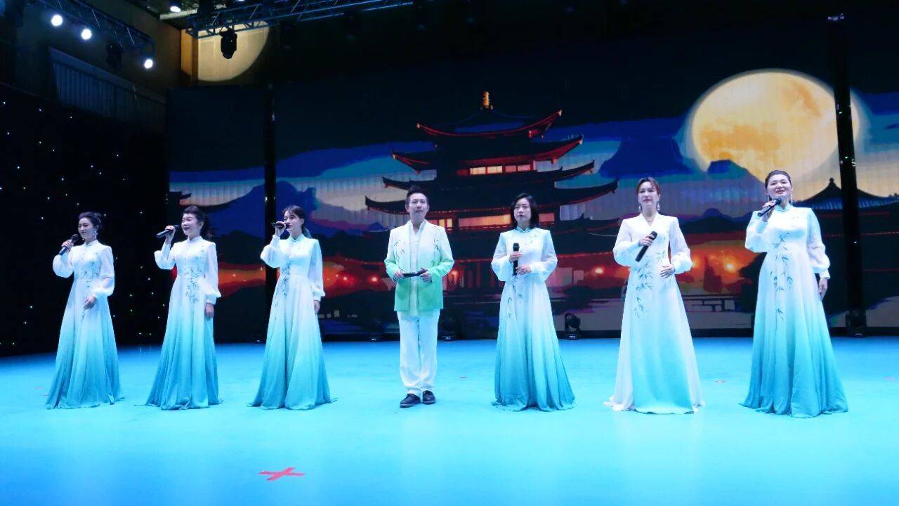 演出在原创诗词歌曲《春江花月夜》的悠扬旋律中拉开帷幕。歌声婉转,旋律灵动,瞬间将观众带入如诗如画的意境。紧接着,男子独舞《墨韵中华》以刚柔并济的舞姿展现中华传统文化底蕴,将书法神韵与舞蹈美感融合,赢得观众喝彩。随后,女子舞《孔雀东南飞》、歌曲《花儿为什么这样红》《江山》《秋月》《弹起我心爱的土琵琶》等节目接连上演,将演出气氛推向高潮。演出接近尾声时,全体演员共同登台,合唱《我和我的祖国》。激昂的歌声在演播大厅回荡,将现场气氛推向最高潮。观众们以热烈的掌声和欢呼声,表达对演出的喜爱与认可。