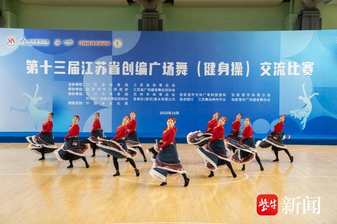 由江苏省体育局、江苏省体育总会主办的第十三届江苏省创编广场舞(健身操)交流比赛在张家港职工文体中心举行,来自全省13个市代表队,20支队伍,300余名广场舞爱好者参加比赛。