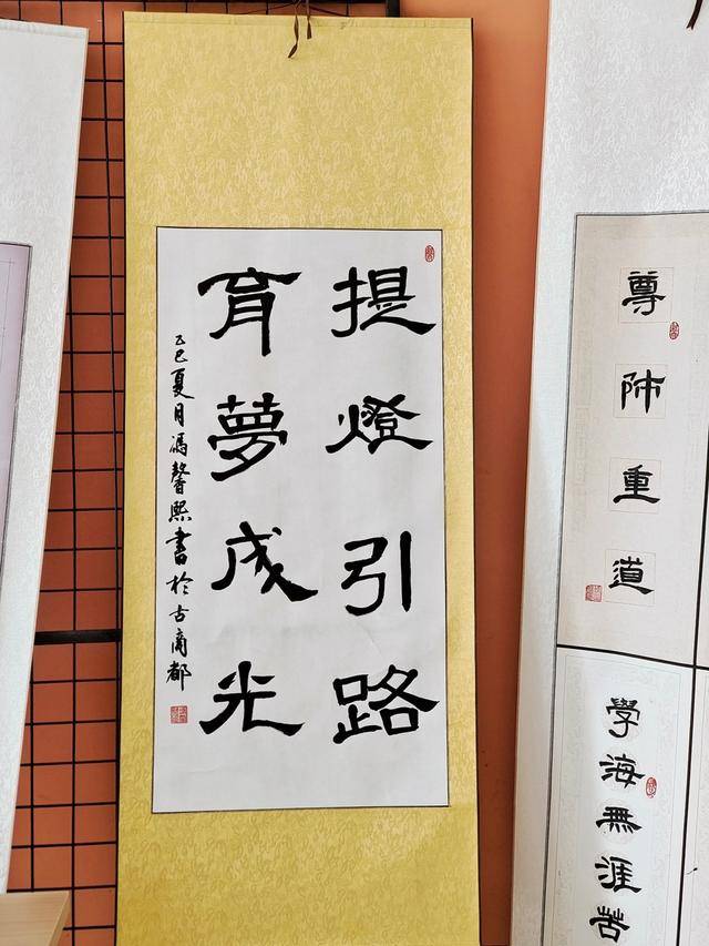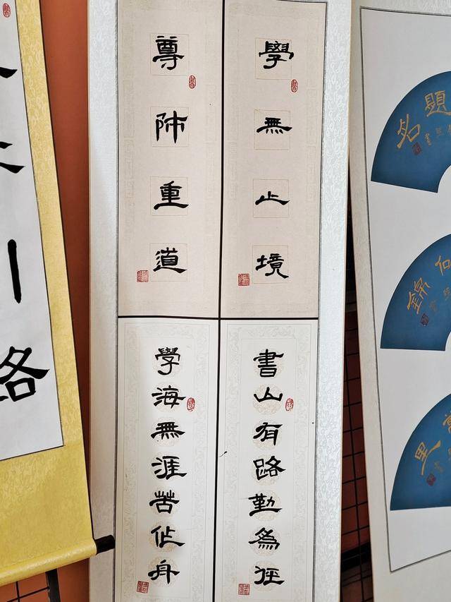 今天我去看了冯馨熙的书法展,里面展示的东西好多呀!有字、有古诗、还有书写的节气扇子。其中我最喜欢节气扇子了,每一把扇子都不一样,而且每一把扇子都有自己独特的风采。我觉得冯馨熙同学的书法非常好看,仿佛让我走进了书法世界一样。——三三班郑涵予