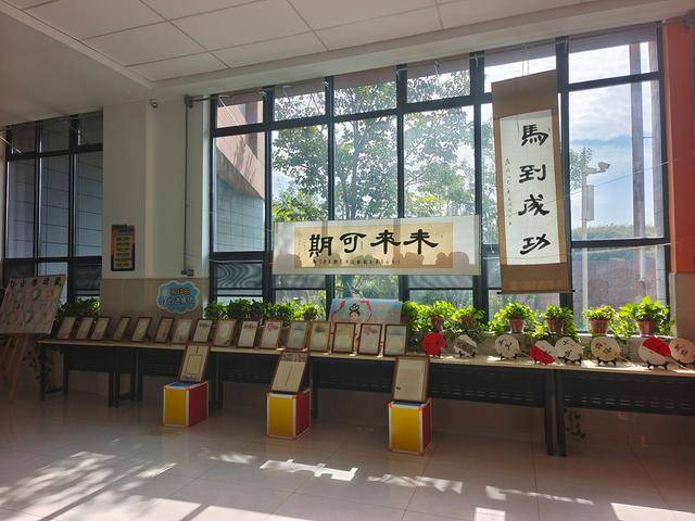 在郑州市二七区幸福路小学华侨城校区的教学楼一楼大厅,隔三岔五就会有各类幸福萌娃的专属展览会。无论是书法、绘画,还是习作,全校同学都可以参观、学习,甚至“指点”一二。哪位同学被学校办了展览,别提有多高兴了,对其他同学也是一个激励。