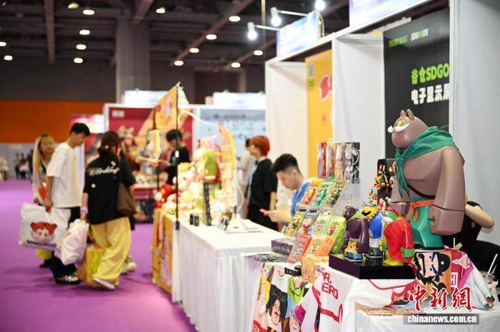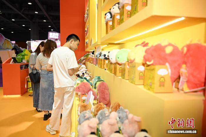 10月31日,SAT潮流艺术展在位于广州市的保利世贸博览馆开幕。本次展会以“潮玩共生,艺术无界”为主题,来自全球的450余家潮玩品牌与艺术家齐聚于此,携超过2000款限定新品亮相。图为毛绒公仔吸引参观者选购。中新社记者 陈楚红 摄