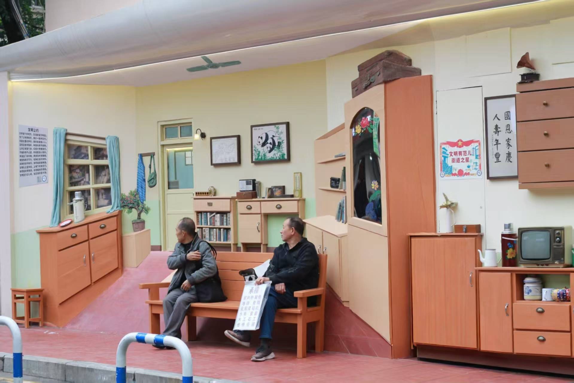 开巷当天,居民们手持《巷往藏宝图》,在8个“文明微景观”点位间打卡集章。木匠铺里,非遗传承人正与摊主共制店铺招牌,非遗剪纸代表性传承人指尖翻飞,木刻刀在匠人手中流转出岁月肌理;记忆橱窗前,老人对着老物件娓娓道来,老茶馆旁的摄影展定格着邻里温情……这个2000平方米的老旧小区,如今已成为“文明有范儿·巷往”示范治理空间。