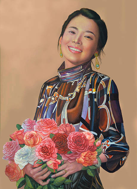 薛嘉惠勾勒出画面开合有度的造型,用温润的色调营造情景,方圆结合,虚实相间,色彩的浓淡使画面彰显层次感。他以形象的语言表现出唯美的意境,神情中又赋予了饱满的心绪。其笔法与色彩的相互渗透,最终带给作品的是画面与心境的完美呈现,通过这些情感特质提炼出高雅而深远的境界,让人们看到的是充满温情的平和景象,形成独树一帜的个人艺术风格。