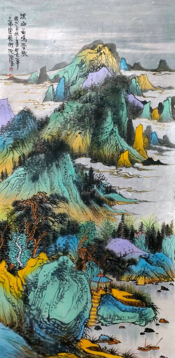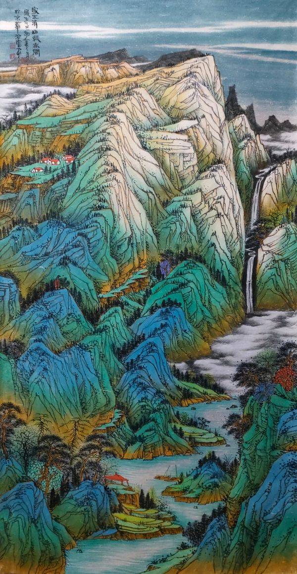 青绿山水始创于唐代,经几代画家发展传承,形成一种程式化的表现方法,但要画好难度很大,清“四王”之一王石谷说:“凡设青绿,体要严重,气要轻清,得力全在渲晕,余于青绿法静悟三十年始尽其妙。”换言之,画青绿没有水墨画功底是不行的。