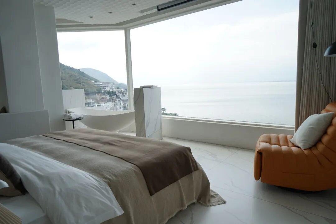 随着洱海治理成效逐渐显现,文笔村的好风光吸引了大批游客,也引来了不少投资者。2023年,许霄回到家乡创业,开办了这家海景酒店。“酒店的所有设计都围绕苍山洱海展开。”屋顶花园是观山看海的最佳位置,客房的大落地窗更是将山海景致尽收眼底,客人推窗便能与苍山洱海“零距离”接触。“很多客人就是冲着这份‘山海风光’来的。”许霄说。