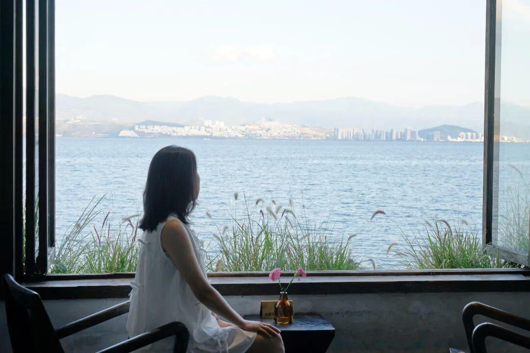 除了日出,丁达尔光束穿透云层的绮丽、雨后彩虹横跨湖面的绚烂、海菜花漂浮水面的清新……店里的每一扇窗都是大自然的画框。晨昏交替,四季更迭,流动的生态画卷不断变换。即便并非旅游旺季,店里依旧客流不断,窗边的游客排队打卡,只为以洱海为背景定格美好瞬间。