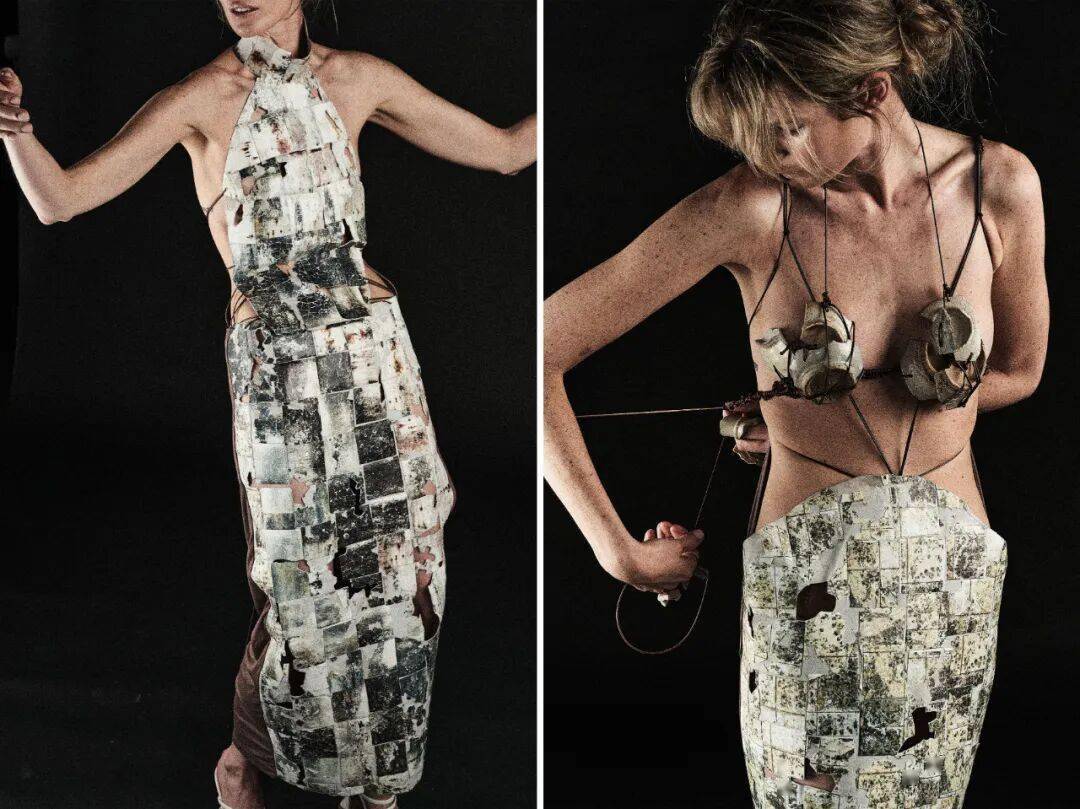 他受景德镇非遗技艺“薄胎瓷”(胚体厚度仅0.1-0.5毫米)启发,从贝母和闪片材质上获取灵感,研发起可穿着的陶瓷面料。