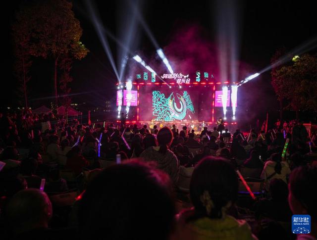 11月1日,在四川省眉山市彭山区,乐队在主题音乐会上演出。