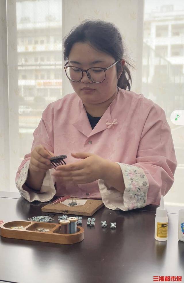丝线缠绕、花型灵动,一枚枚精美的盘扣,不仅是传统工艺的载体,更藏着邵阳女孩盛克霞的匠心。毕业于邵阳职业技术学院的她,在盘扣制作领域已经摸索了两年多,打造出百余件作品。
