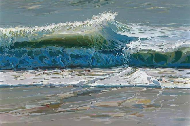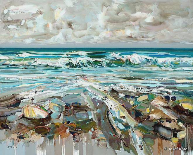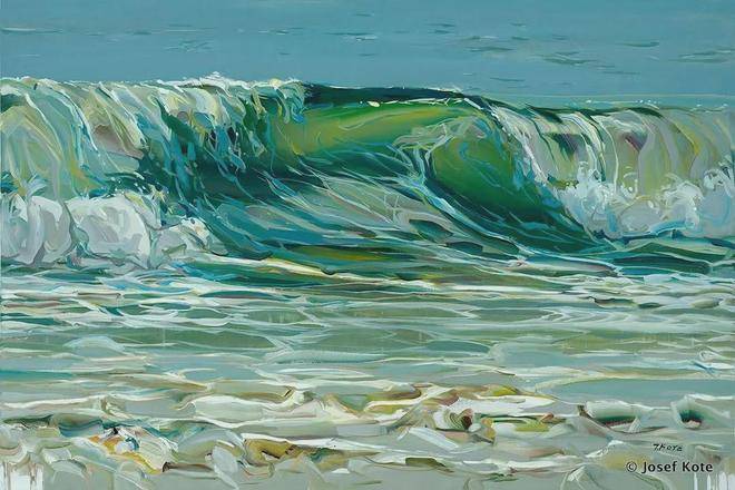 约瑟夫·科特笔下的大海,无疑是艺术史上的一抹壮丽风景。那汹涌澎湃的海浪,仿佛是大自然奏响的激昂乐章,每一道波涛都蕴含着无尽的力量。他运用大胆而富有张力的笔触,将大海的动态之美展现得淋漓尽致。色块在他的笔下相互交织、碰撞,形成强烈的视觉冲击。深邃的蓝色与洁白的浪花相互映衬,光影在波涛间流转,仿佛能让人感受到海风的吹拂和海水的咸涩。那翻滚的海浪,似是在诉说着大海的故事,引领着观者进入一个充满奇幻与神秘的海底世界。