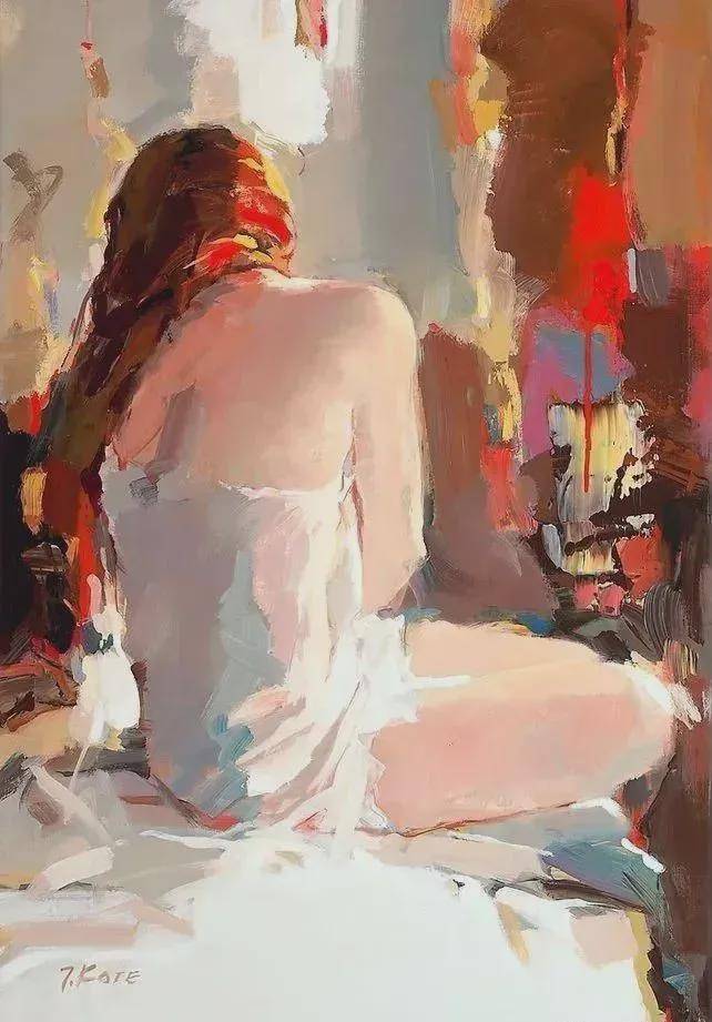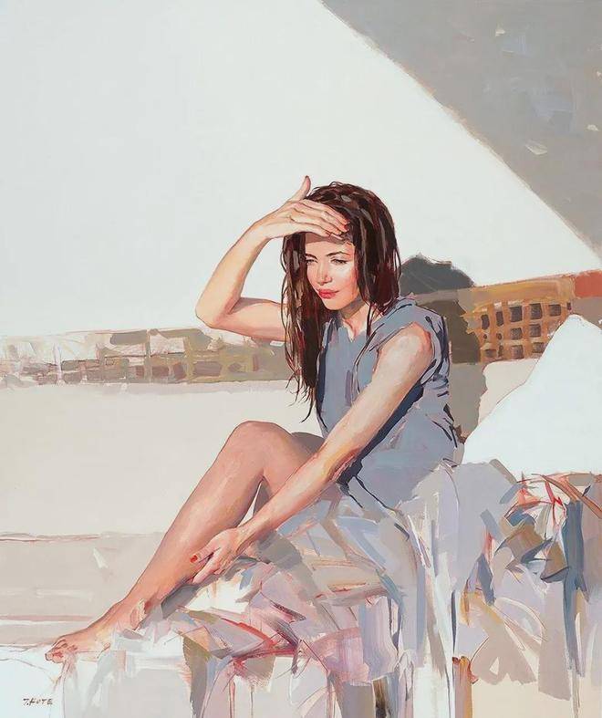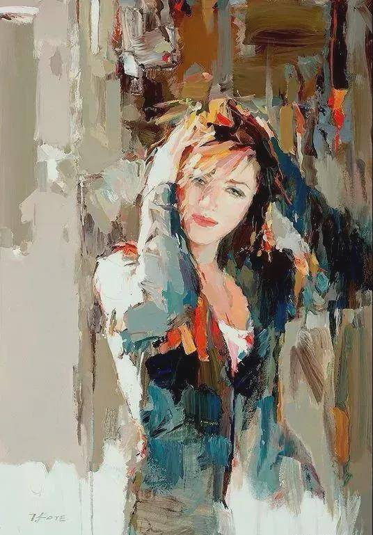 他的油画笔触色块分明,这是其艺术风格的一大显著特征。在女性人物的描绘中,这种笔触运用得恰到好处。他不会过分追求细腻的线条勾勒,而是以大胆的色块来塑造人物的形态和轮廓。女性的肌肤,在他的笔下不再是简单的色彩涂抹,而是由一个个精心调配的色块组合而成。这些色块相互融合又相互区分,既展现出肌肤的光滑质感,又赋予了人物一种独特的立体感。例如,在描绘女性的面部时,他可能会用柔和的粉色和淡黄色来表现脸颊的红润,用深邃的棕色和黑色来勾勒眼睛的轮廓,通过色块的对比和过渡,使女性的面部表情生动而富有神韵。