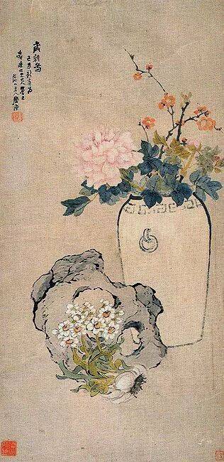 没骨画法,介乎工笔及写意中间,既不似前者须线条工稳、细致、流畅,色彩匀净、明丽、典雅,所画物象造型准确,生动逼真。又不同后者笔墨彩挥洒恣肆,酣畅淋漓,譬如明代徐渭的泼墨写意画,别开生面自成一家,无论是花卉还是花鸟,皆一挥而就。
