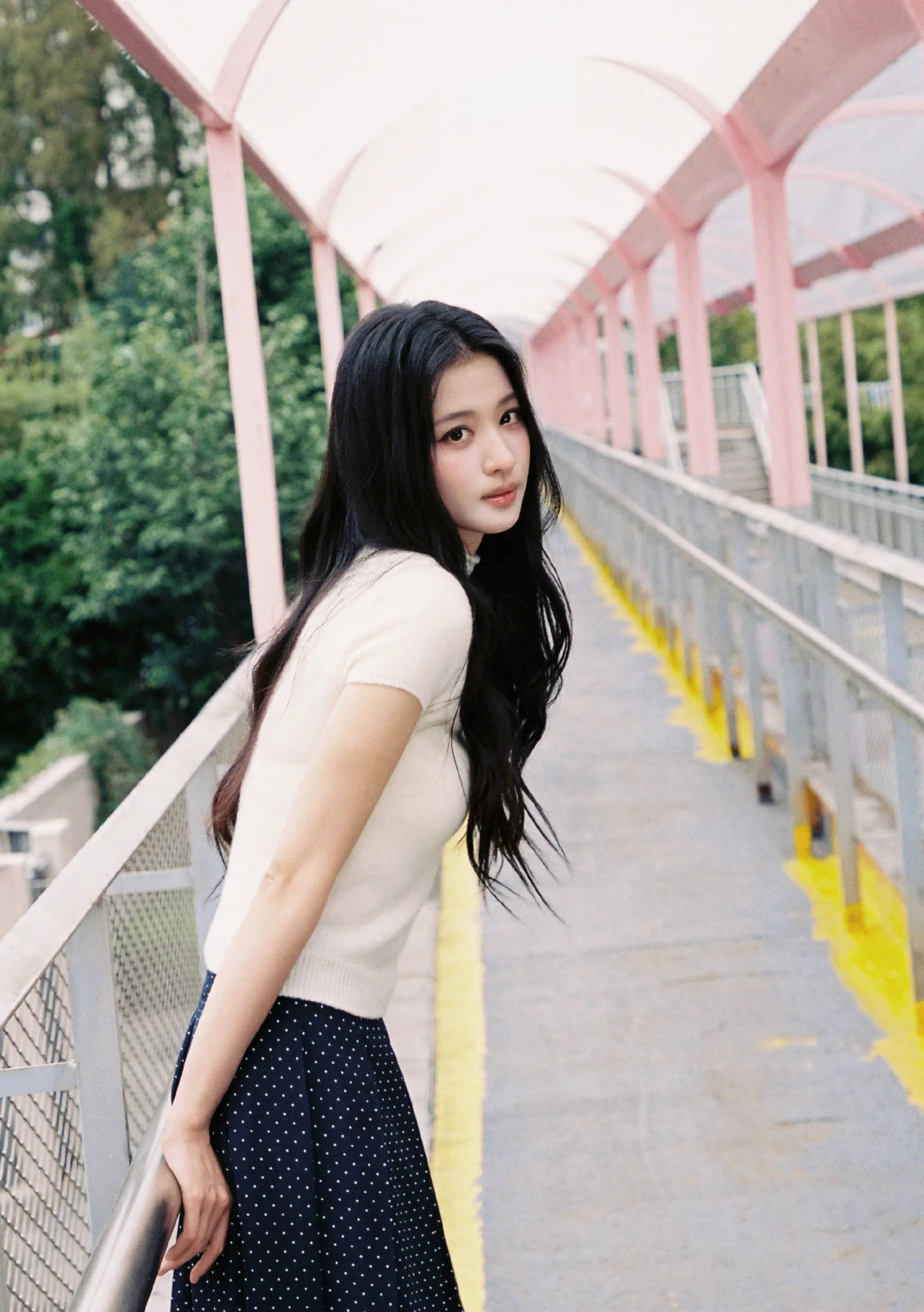 王楚然绽放甜美笑容,十分娇俏靓丽。