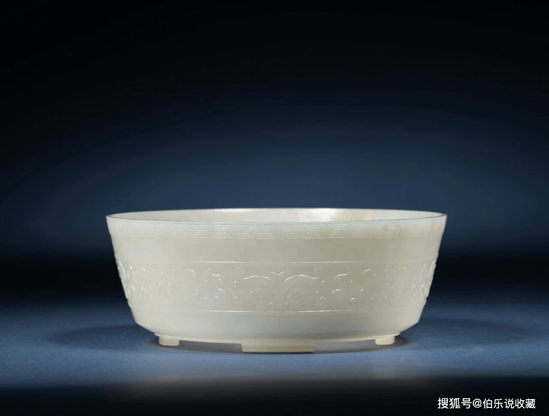 本次秋拍的白玉兽面纹洗,器壁透薄,纹饰透壁可见,集合中西工艺之长,堪称乾隆朝追仿古彝、仿痕都斯坦玉器的典范之作。