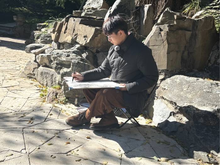 与此同时,陈泽谦在濠濮涧的写生实践和讲解中,深化了对山水画“关系美学”的诠释——山水画之妙,不在描摹物象的孤立形态,而在着力于物象间的有机联结,恰如人与人之间、人与自然、与建筑之间多元构筑的和谐整体。
