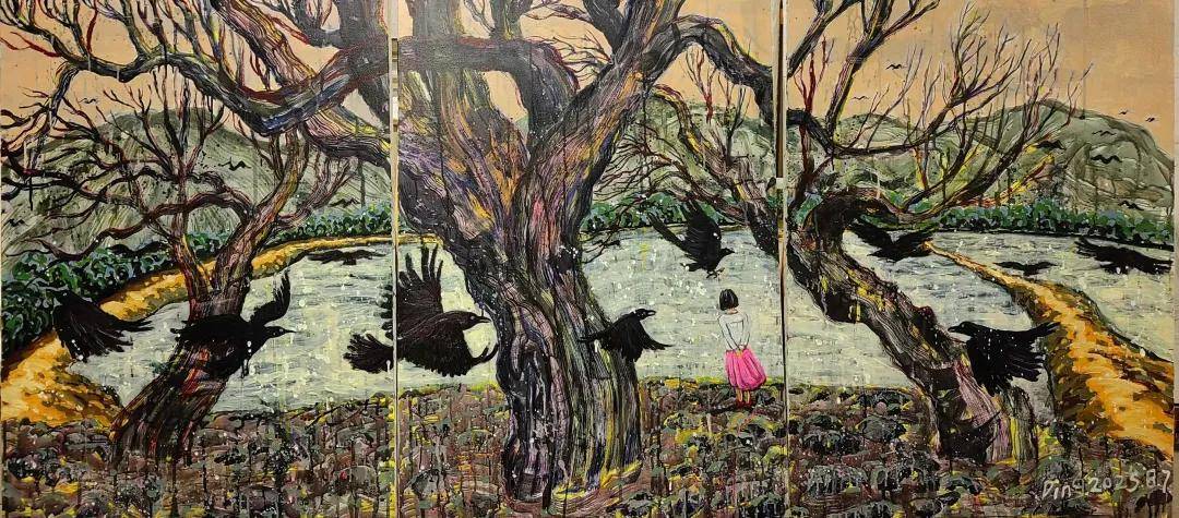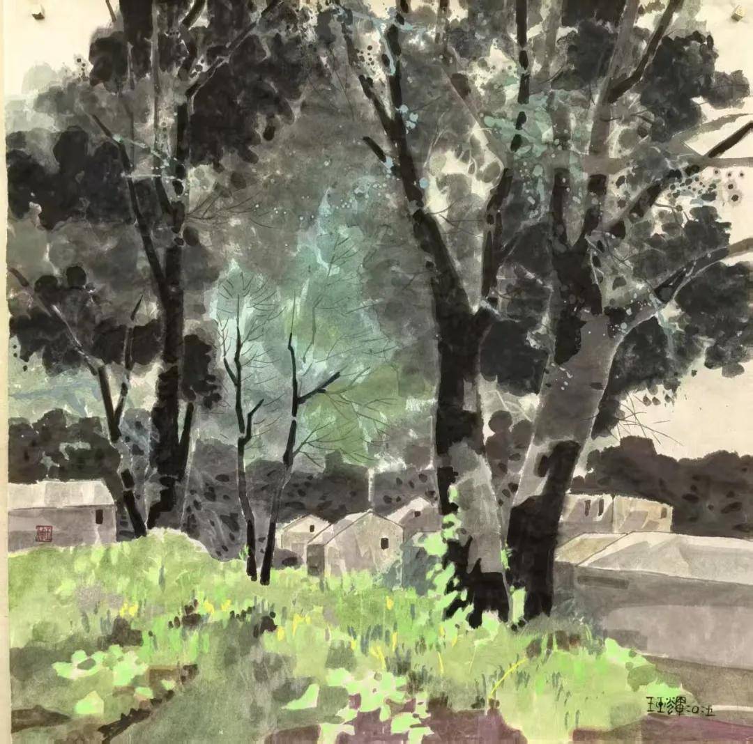 王玉辉 《仁寿村的大青树》70x70cm 纸本重彩 2025