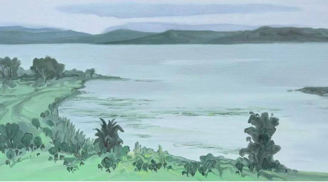 罗斌 《异龙湖畔小雨》80x45cm 油画 2025