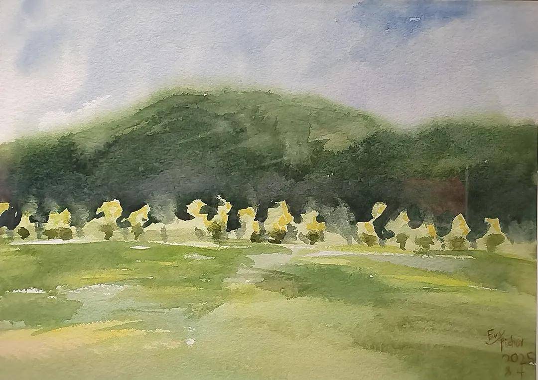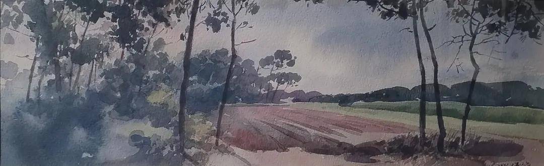 张永宁 《林野清晖》12.5x37cm 水彩 2025