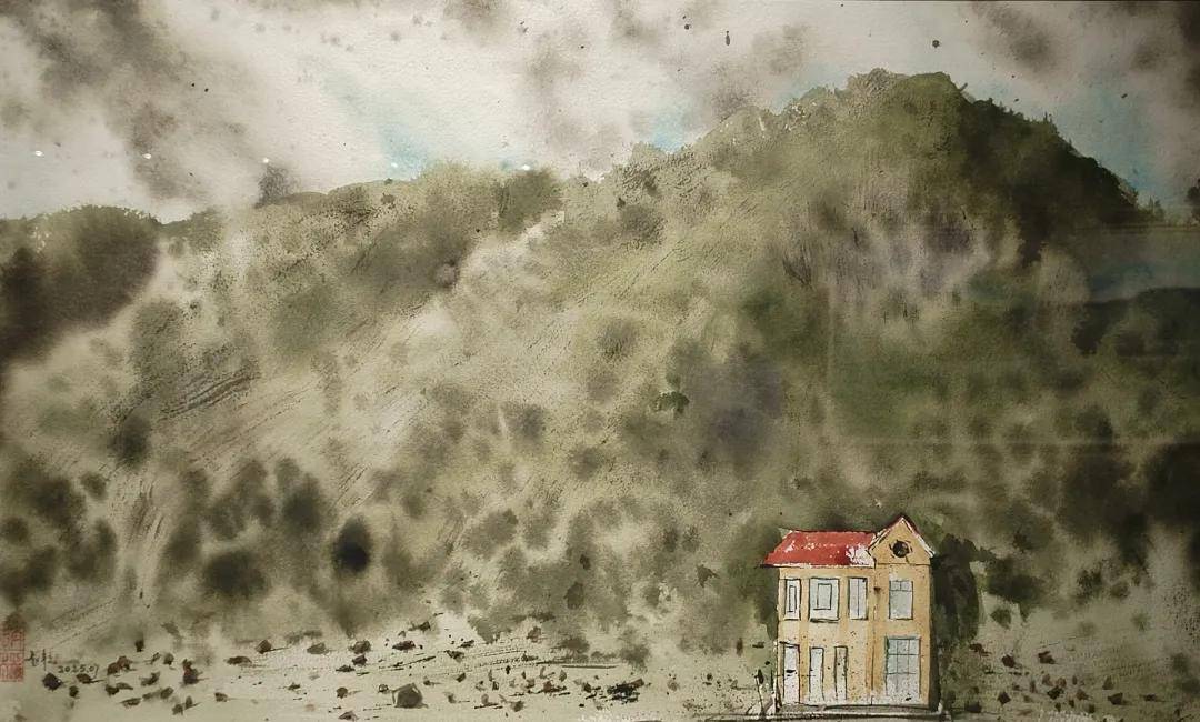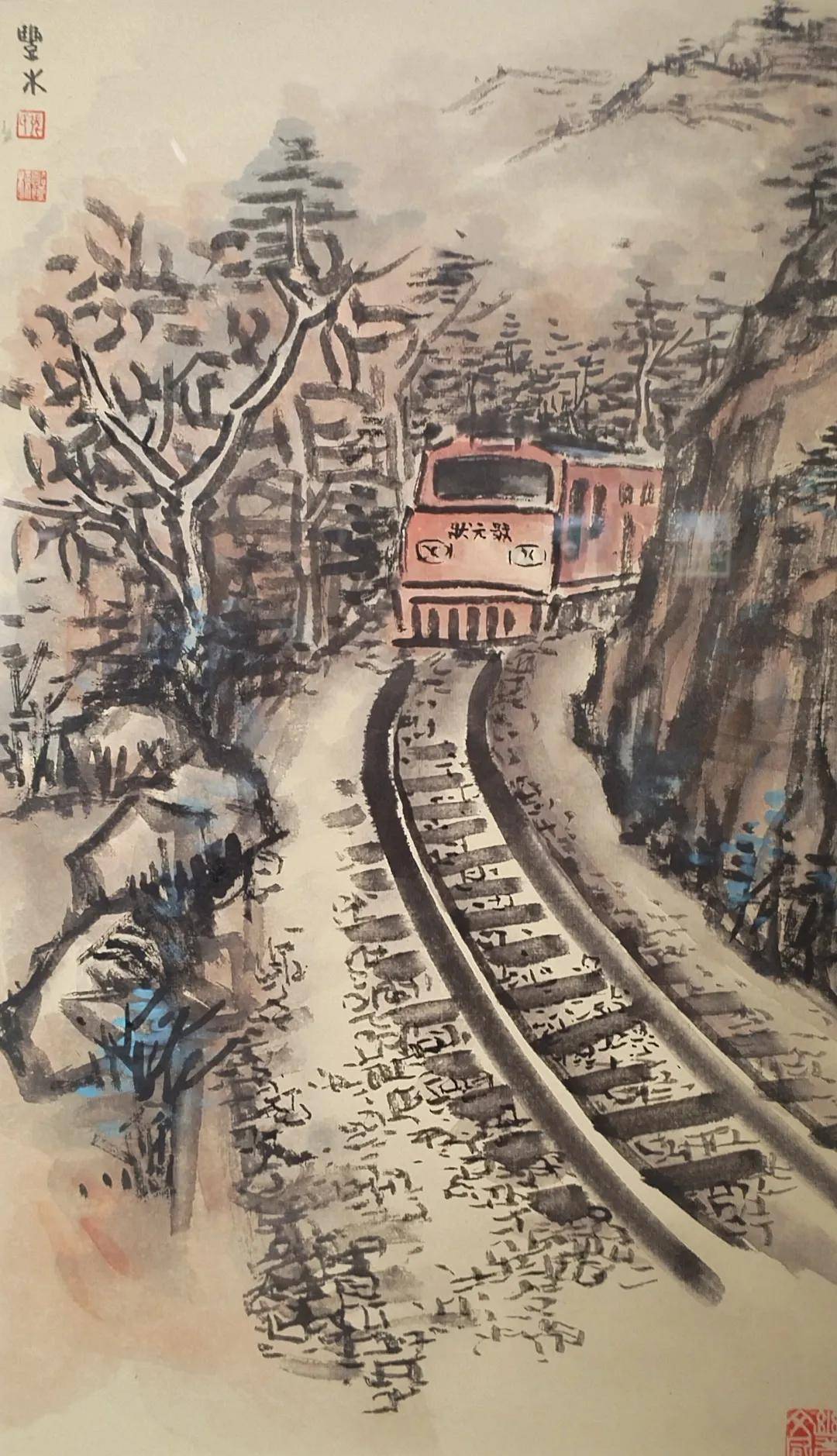 张丰木 《石屏火车站》30x50cm 纸本水墨 2025