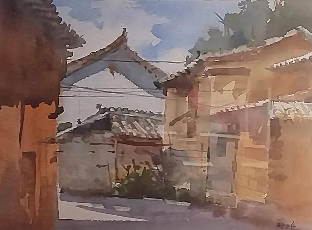 尹沁芬 《郑营民居》41x31cm 水彩 2025