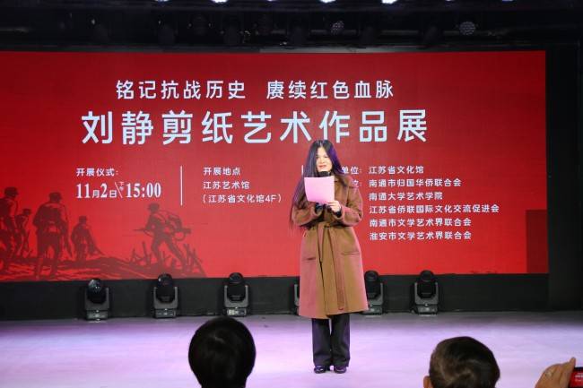 当剪刀划破红纸,烽火岁月的轮廓在指尖苏醒;当纸屑簌簌落下,红色血脉的温度在方寸间流转。11月2日下午,“铭记抗战历史 赓续红色血脉——刘静剪纸艺术作品展”在江苏省文化馆正式启幕,文化界、艺术界、侨界同仁齐聚现场,共赴这场“纸载红色记忆”的艺术之约。