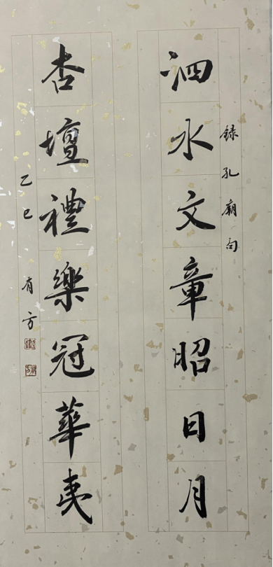 行书对联《泗水文章昭日月;杏坛礼乐冠华夷》