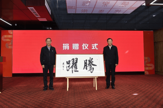 黄有方教授(左)向济宁能源发展集团捐赠书法作品