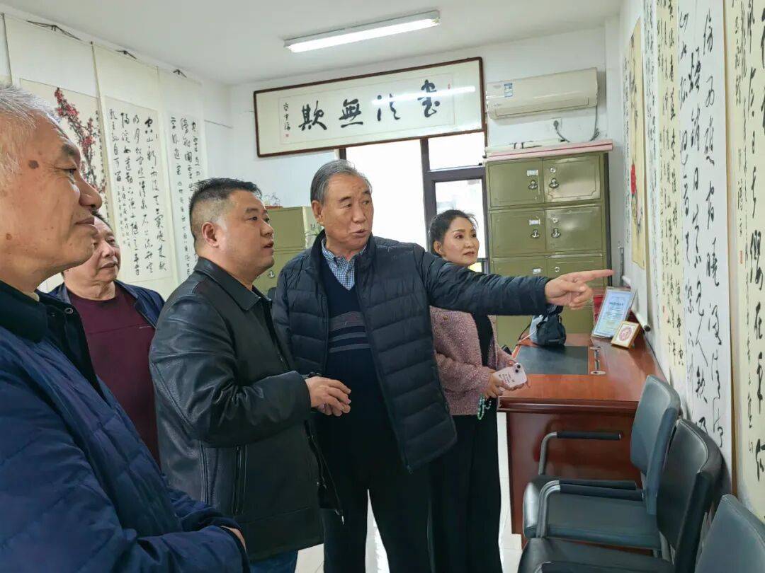 太原市老年书画家协会主席杜成元引导参观协会会员作品