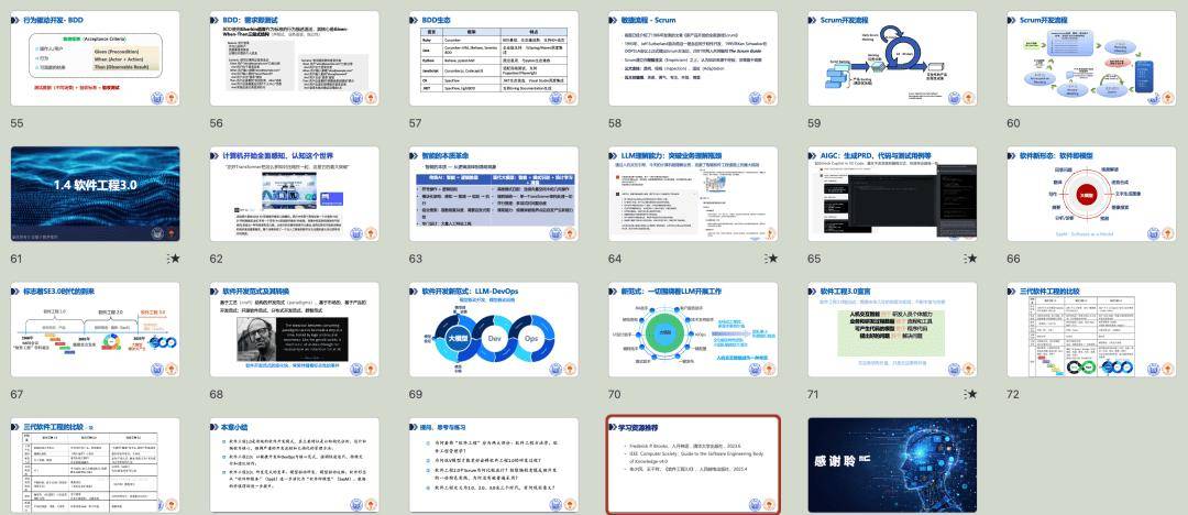 建议教师根据课程安排和学生基础,灵活选择教学内容。对于初学者,教师可以先从基础章节入手,帮助学生建立扎实的软件工程基础; 对于有一定基础的学生,教师可以重点讲解人工智能技术在软件工程中的应用部分,引导学生深入探索前沿知识。在教学过程中,可以结合实际项目案例,组织学生进行小组讨论和实践操作,提高学生的实际应用能力。学生在学习时,应注重理论与实践相结合,积极思考每章的思考题和习题,通过实际操作加深对知识的理解。同时,关注人工智能技术的最新发展动态,将其与教材内容相结合,拓宽自己的视野。
