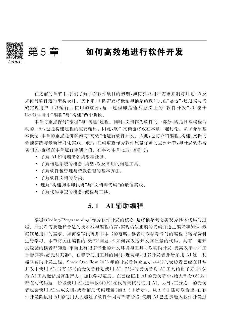 《智能软件工程》是一部系统化阐述软件工程理论与实践的教材,紧扣智能化时代的软件研发需求,全面覆盖软件工程的核心内容与最新发展趋势。全书以软件开发生命周期为主线,详细讲解了需求分析、系统设计、编码实现、测试与质量保障、运维与优化等关键环节,并结合人工智能(AI)、云计算等新兴技术,探讨了AI(特别是大模型、智能体等)技术在软件工程中的应用。通过理论与实践的结合,本书不仅帮助读者掌握传统软件工程的基本方法,还引导其理解如何利用大模型完成需求、设计、编程、测试、运维等工作,从而优化开发流程,显著地提升软件研发的效率与质量。