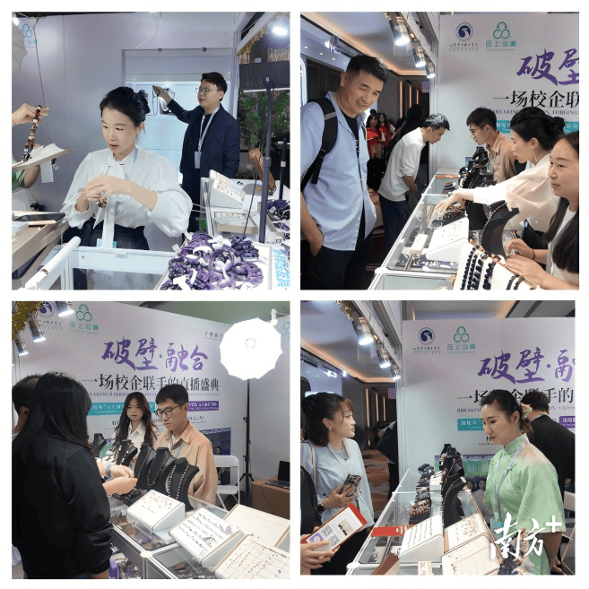 在这场汇聚全球行业精英、聚焦产业高质量发展的盛会中,汕尾职业技术学院“云上汕美”师生团队携手校企合作企业“云上汕美珠宝有限公司”“东之源珠宝&福轩珠宝有限公司”精彩亮相,在温德姆酒店展区、可塘彩宝城展区和长沙湾服务区展区助力合作企业参展,并通过现场直播推介汕尾珠宝。