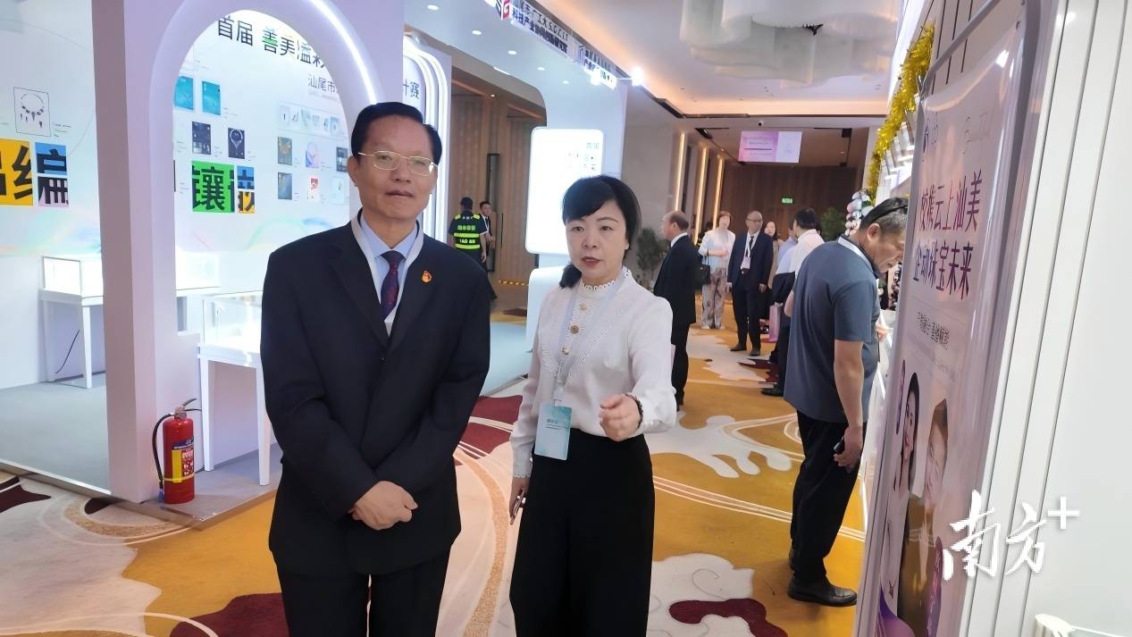 展会首日,汕尾职业技术学院党委书记林来平来到汕尾职业技术学院和汕尾市云上汕美珠宝有限公司展位,对校企合作项目的阶段性成果给予充分肯定。