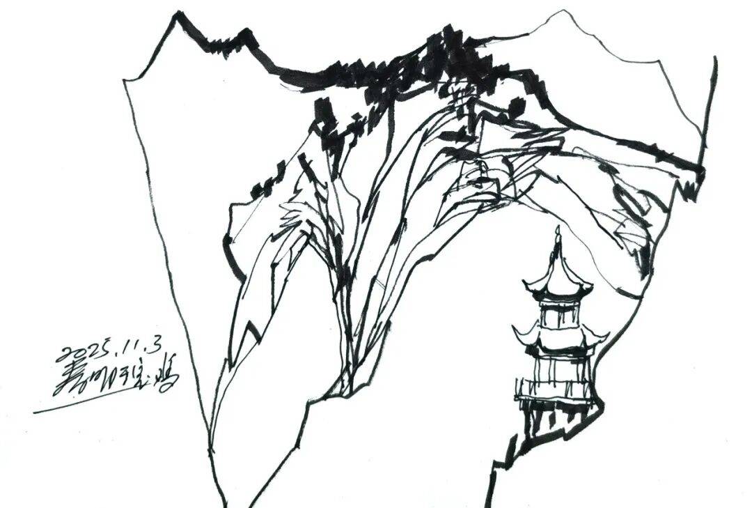 2025年11月2日,中国水墨画院宝鸡古陈仓写生团前往陕西宝鸡九龙山进行写生采风活动。写生团由中国水墨画院院长吴彤领队。