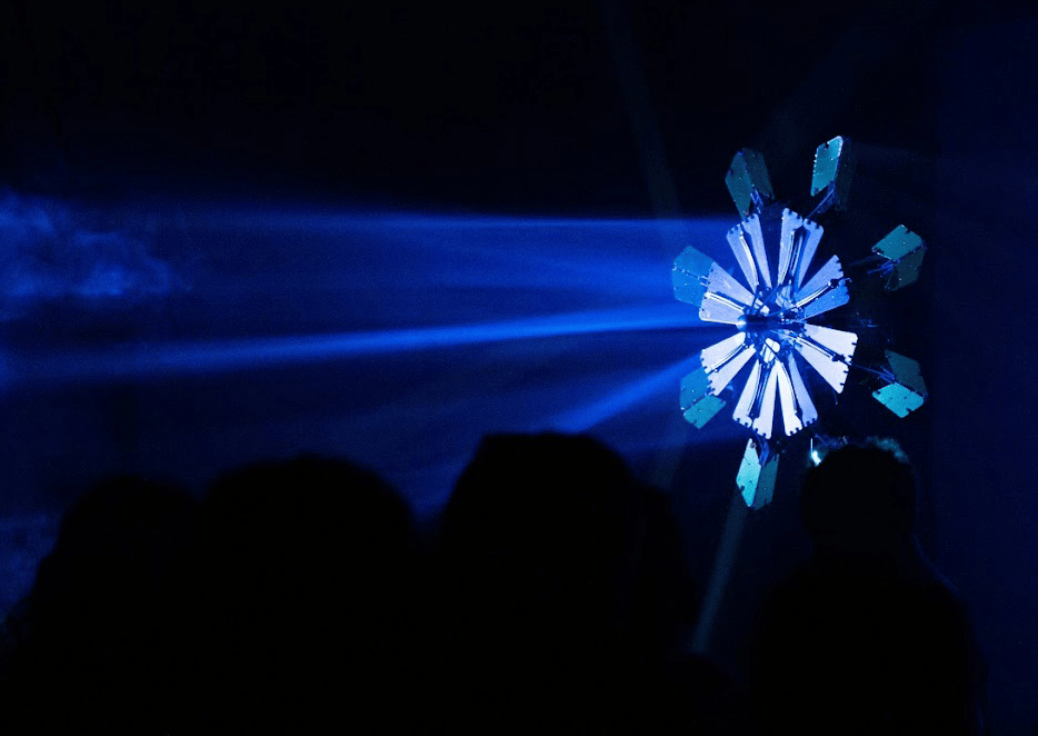 ·《宇宙绽放》是一件动态雕塑。八朵“宇宙之花”呈放射状排列,将光线转化为与环境的灵动对话。这些最初为摇滚乐队Crumb舞台创作的动态花朵,首次以完整装置形式亮相深圳街头,带来一场光影流动的盛宴。