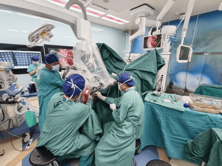 手术中,团队综合运用机器人导航、术中唤醒、术中电生理监测、脑机接口实时解码、术中超声及术中核磁等多项尖端技术。在生成的可视化脑功能图谱导引下逐步切除肿瘤,患者保持清醒配合完成语言、运动等功能测试,医生据此精准定位肿瘤边界,在全程保护脑功能的前提下,最大程度切除病灶。整个手术过程安全顺利,患者术后神经功能保护良好。这一技术突破实现了“精准切瘤”与”功能保护“的完美平衡,标志着山西省神经外科诊疗水平迈上新台阶。
