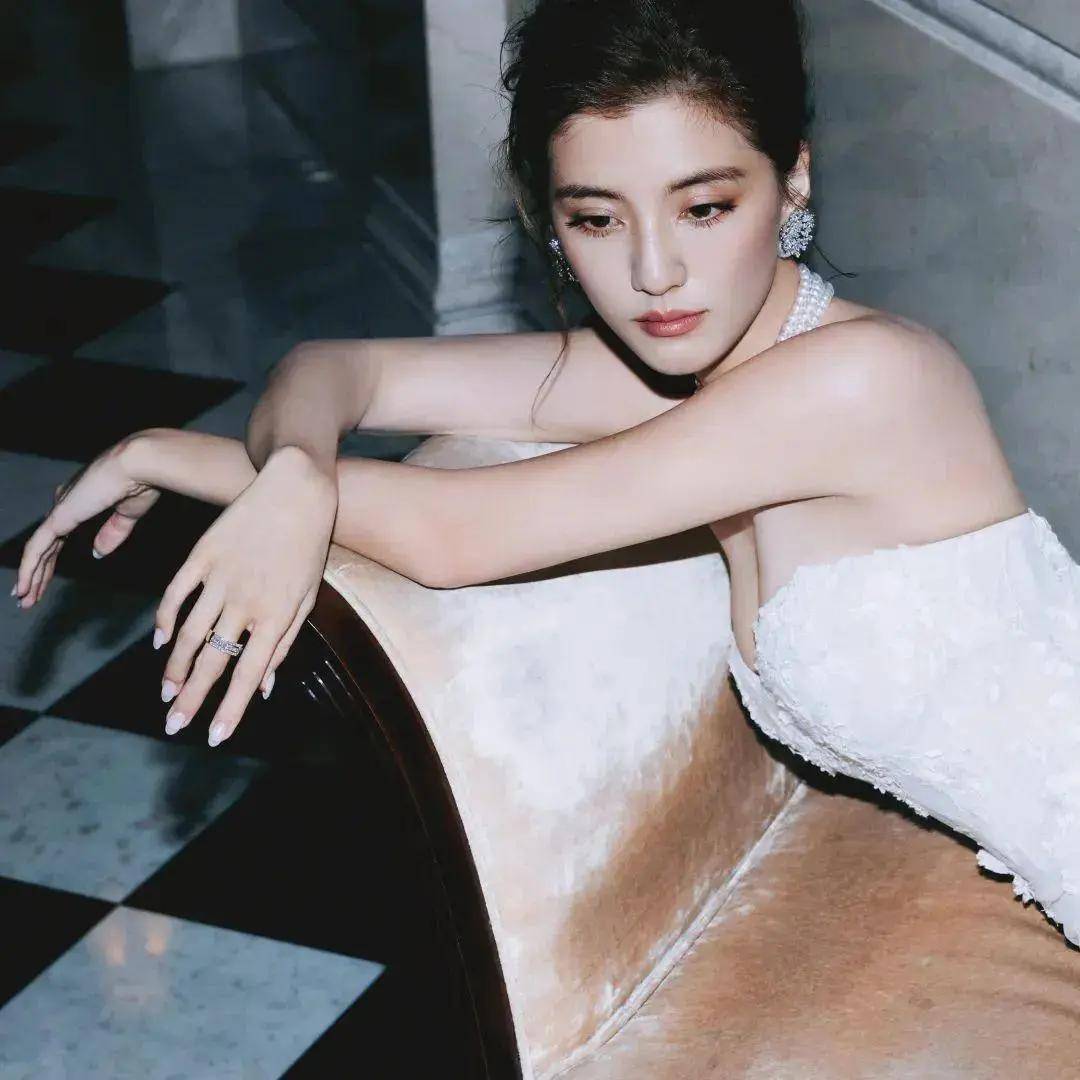 吴千语穿着白色抹胸衣裙,她俏脸清丽脱俗,长发盘起很摩登,这位女星侧身趴在沙发上,露出白皙的香肩和事业线,修长的手臂和纤纤玉手,肌肤娇嫩如雪,曼妙的身材曲线,绝对性感撩人!
