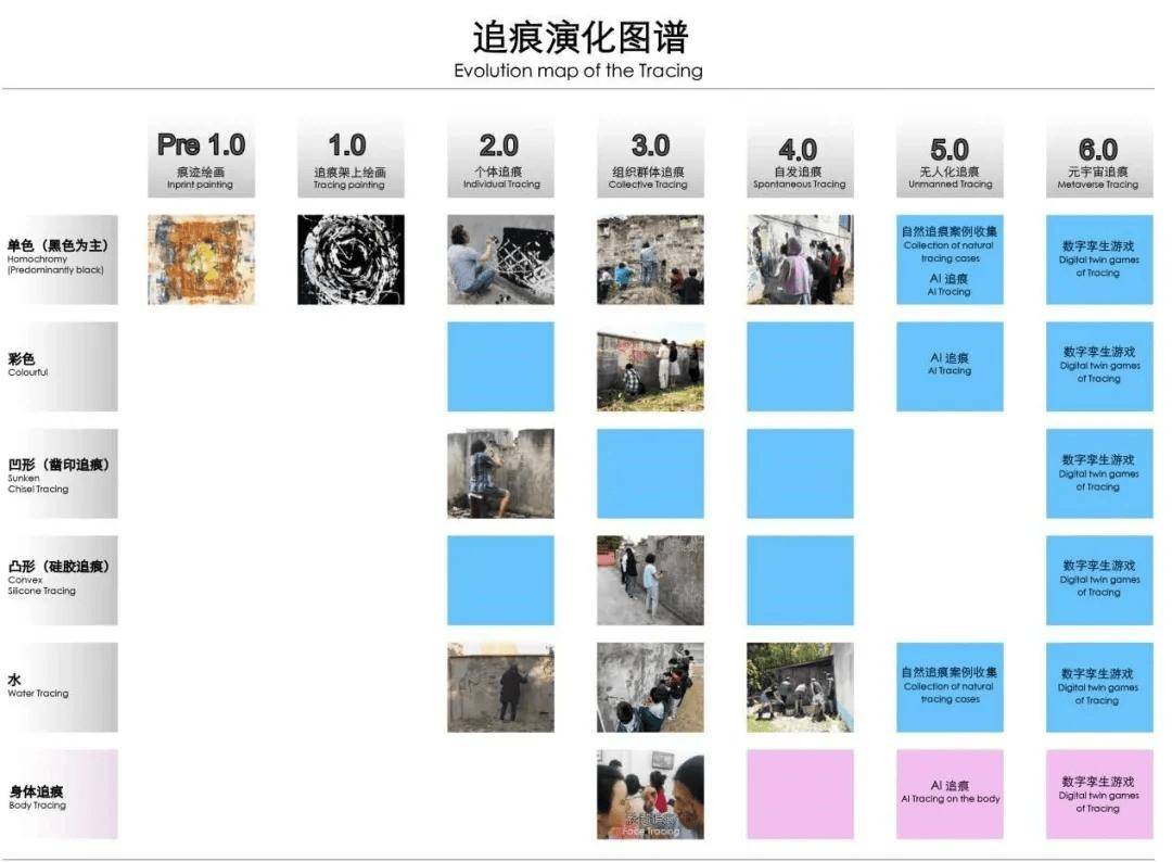 之后,他又发动公众参与并将追痕的方式不断拓宽,形成了作为媒材与对象变化的纵向发展维度和作为参与群体变化的横向发展维度,使得“追痕”这一新公共艺术活动不断推陈出新,并且具有了极强的变异性和链接未来的可能性。