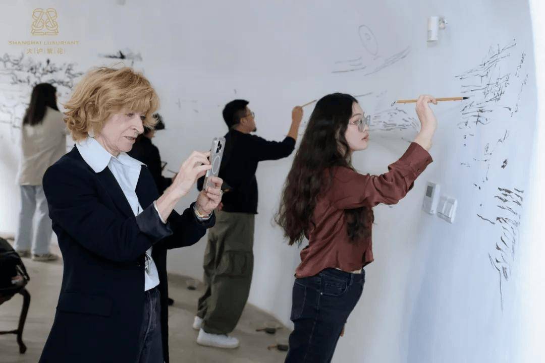 展览现场,多位曾在空间举办过在展览的艺术家和众多艺术爱好者,在空间墙壁纷纷“追痕”做画,告别这个曾经入围上海最美的公共艺术空间,以及过去七年来的美好艺术记忆,并共同期待她在茂名南路205号瑞金大厦新址的涅槃重生。