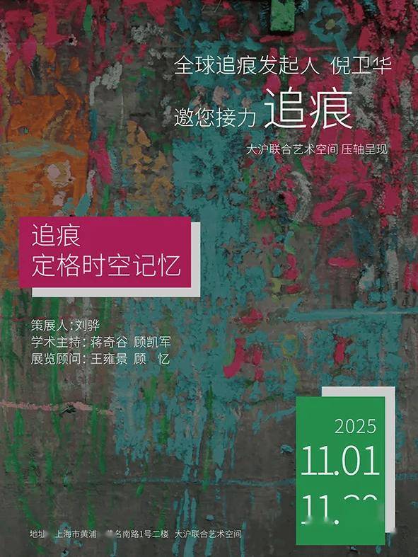 此次展览由“追痕”艺术运动全球发起人,当代艺术家倪卫华先生和大沪联合艺术空间艺术总监刘骅共同策划,特别邀请芝加哥艺术学院蒋奇谷教授,当代艺术家、著名策展人顾凯军先生作为学术主持;大沪社社长王雍景先生、大沪空间的设计师顾忆先生作为展览顾问。