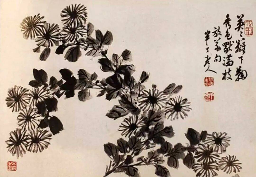 4.英英篱下菊,秀色独满枝。放翁句。半丁老人。