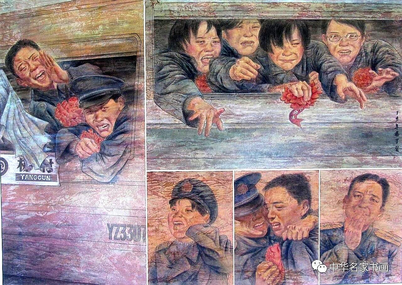 说到底,这支画笔可真是够"淘气"——愣是把直线加方块变成了五线谱,让铿锵步伐跳出了圆舞曲。就像那幅经典无比的"倒驴图",她总能在严肃的军规和活泼的天性之间,走出最俏皮的"平衡木"。可当你看着她笔下的退伍场景,看着那些死死攥着军帽不肯松手的手指,看着月台上一个个用力的拥抱,你才会明白,这支画笔最懂什么叫"笑着离别,哭着想念"。