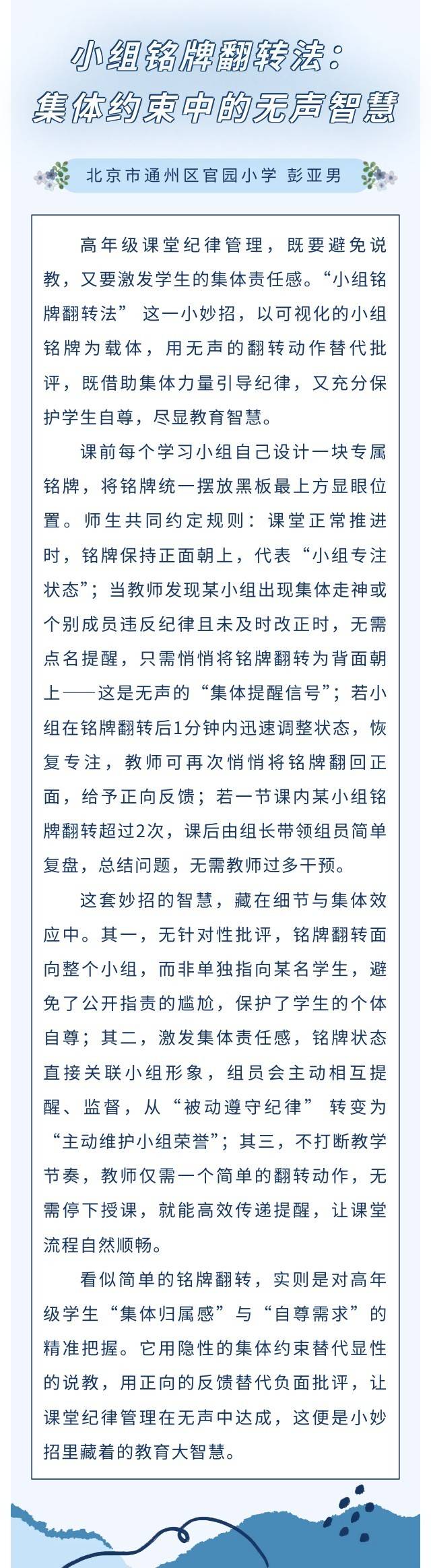 如何让规则从外在约束转化为内在动力,引导学生从被动遵守走向主动探索?为探寻答案,新家校平台发起了《课堂纪律调控的艺术:小妙招,大智慧》主题活动,旨在汇集老师们在构建有序、高效、和谐课堂的实践精华。