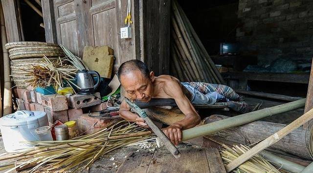 你编不动就不要编了,休息一下,也别想着每天那十几块钱。女儿李凤琴看着父亲李佰洲这么辛苦,总是劝他不要太累。 然而,李佰洲总是坚持每天做竹编,他希望能够多赚一点钱,帮女儿减轻负担。2014年时,李凤琴虽然在外打零工,每月收入也只有1000多元,而李佰洲每天做一个竹器也就十几块钱,但每次拿到这些微薄的收入,他总是满心欢喜。 其实我脑袋还是挺聪明的,啥都能做。只要看个样品,啥都能弄出来。尽管李佰洲因意外导致下半身瘫痪,但他总是乐观面对生活。每当提到自己学会的竹编技艺时,他还喜欢自夸一番。 平时女儿外出打零工时,小外孙也会帮忙照顾外公。每当李佰洲需要下床时,外孙就会帮他扛住双腿,把他当成人形小推车一样移动。虽然外孙力气小,搬起外公的双腿很吃力,但李佰洲依然能够借此移动。如果外孙不在,他就只能用手撑着地面,慢慢爬行,幸好门口不远处有他的工作台,门槛上的一块门板就是他常年工作的地方。