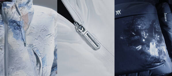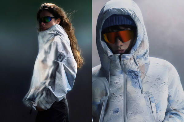同时,联名系列亦纳入迪桑特两款具有代表性的产品——ALLTERRAIN系列"水沢"羽绒服与CREAS硬壳夹克。水沢羽绒服采用SEAM SEAL非缝纫热压胶贴合技术,以热熔贴合工艺替代传统缝线,提升雨雪天气羽绒服的可穿性和舒适度,并配合HEAT NAVI科技,提供充分保暖。CREAS硬壳夹克则延续品牌对功能与设计平衡的探索,采用立体剪裁与防护性面料,兼顾运动与城市场景的多重穿着需求。两款产品均融入 Daniel Arsham的代表性视觉元素,以更具艺术感的方式诠释运动装备的现代形态,为经典单品注入新的创作创意与收藏价值。