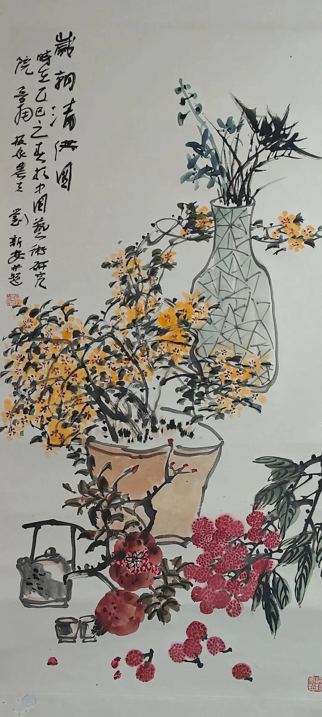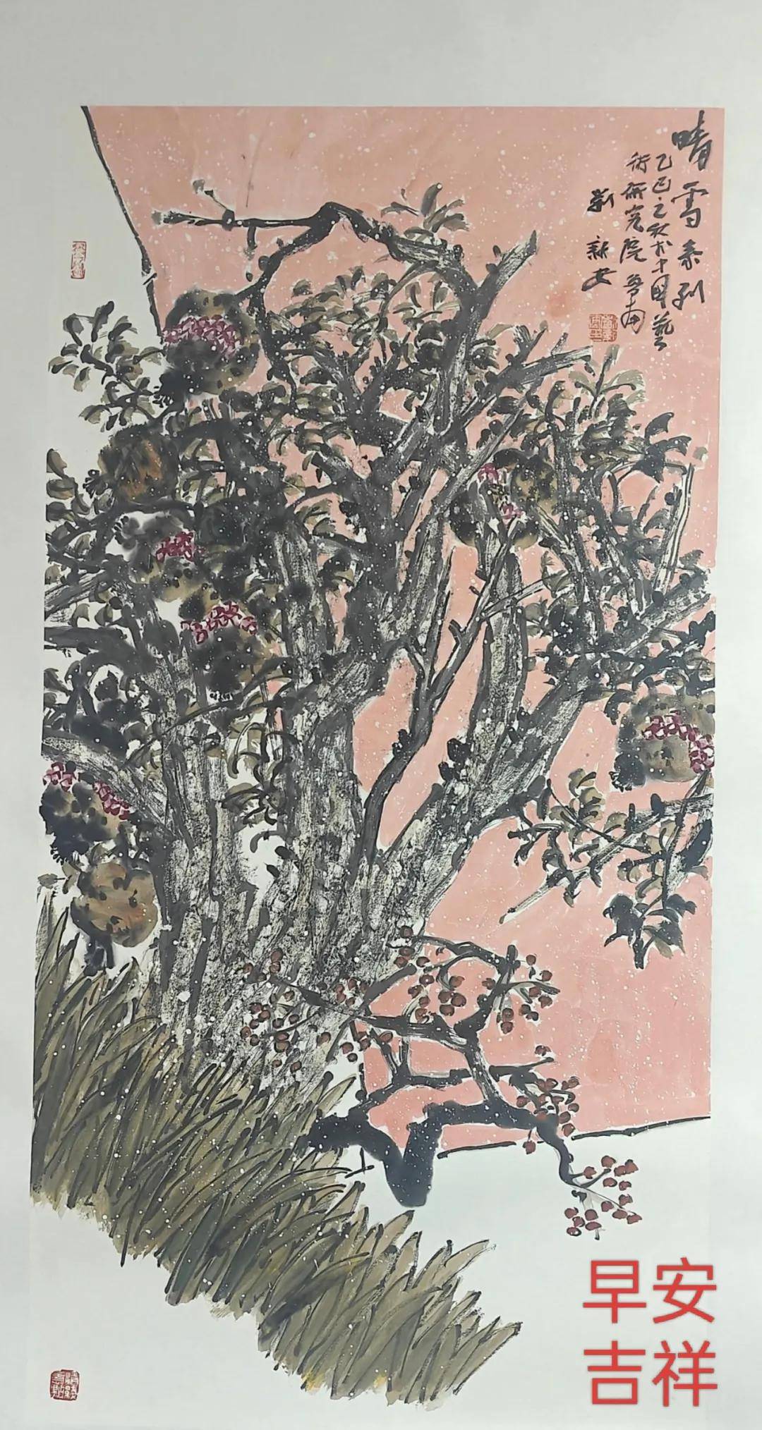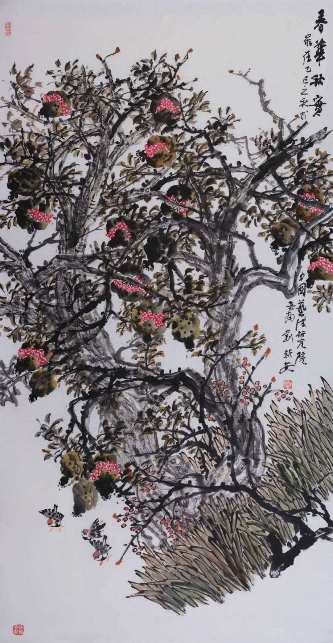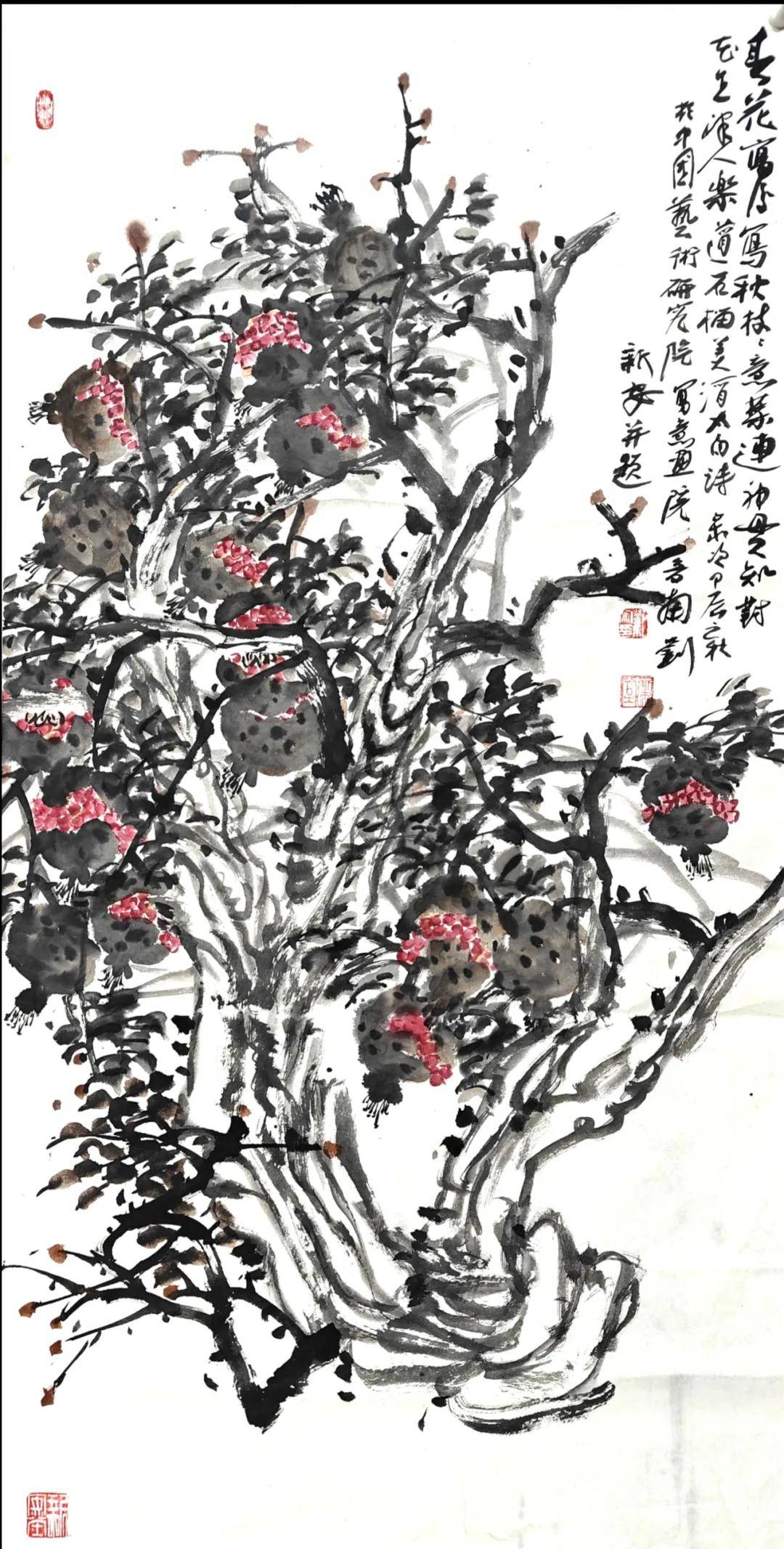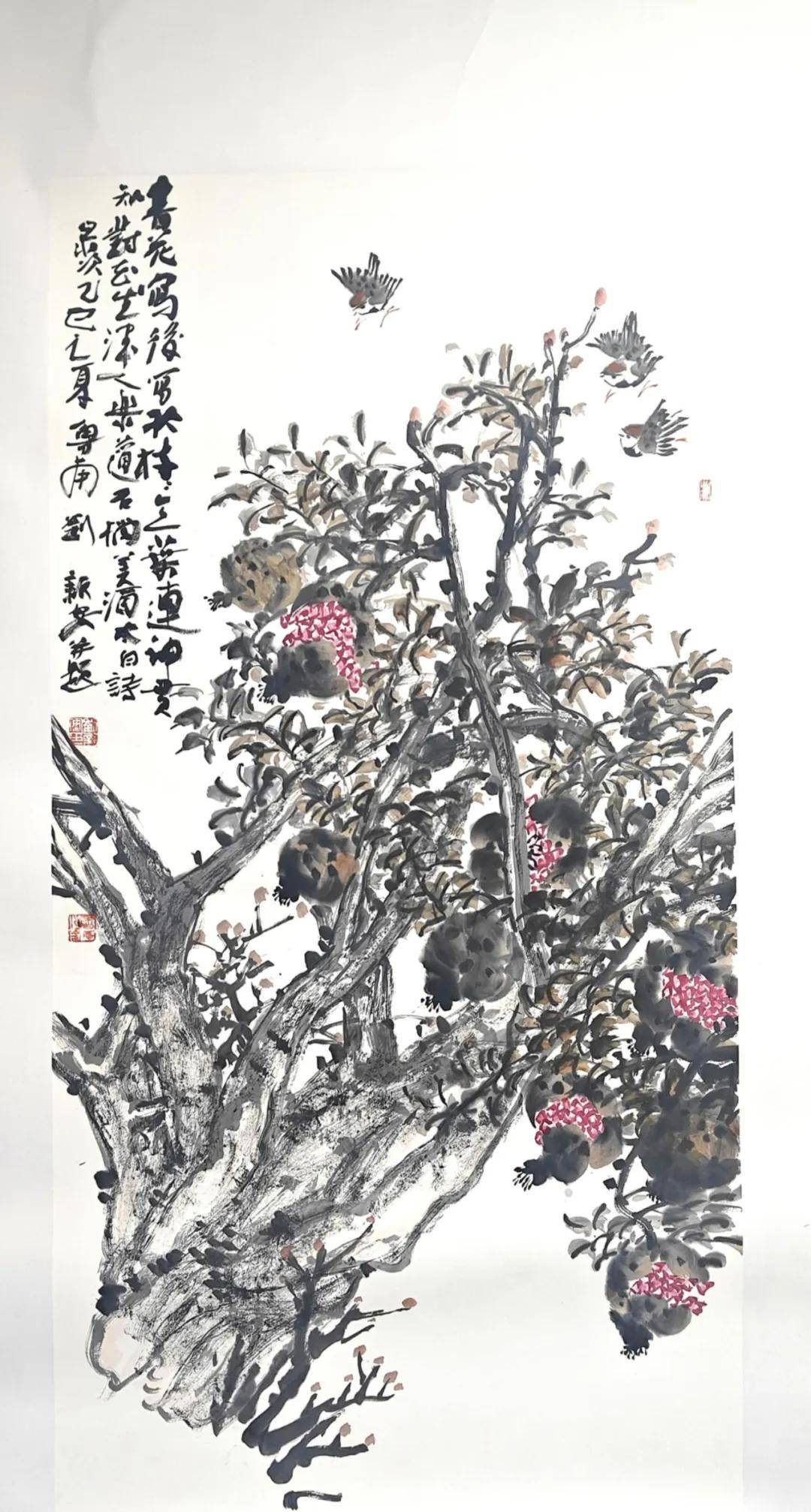 刘新安是一位在当代国画领域具有鲜明个人风格的艺术家,他主攻山水画与花鸟画,尤以画石榴闻名,有中华"安石榴"之誉。他的艺术创作融合传统笔墨与现代审美,形成了独具特色的艺术语言。