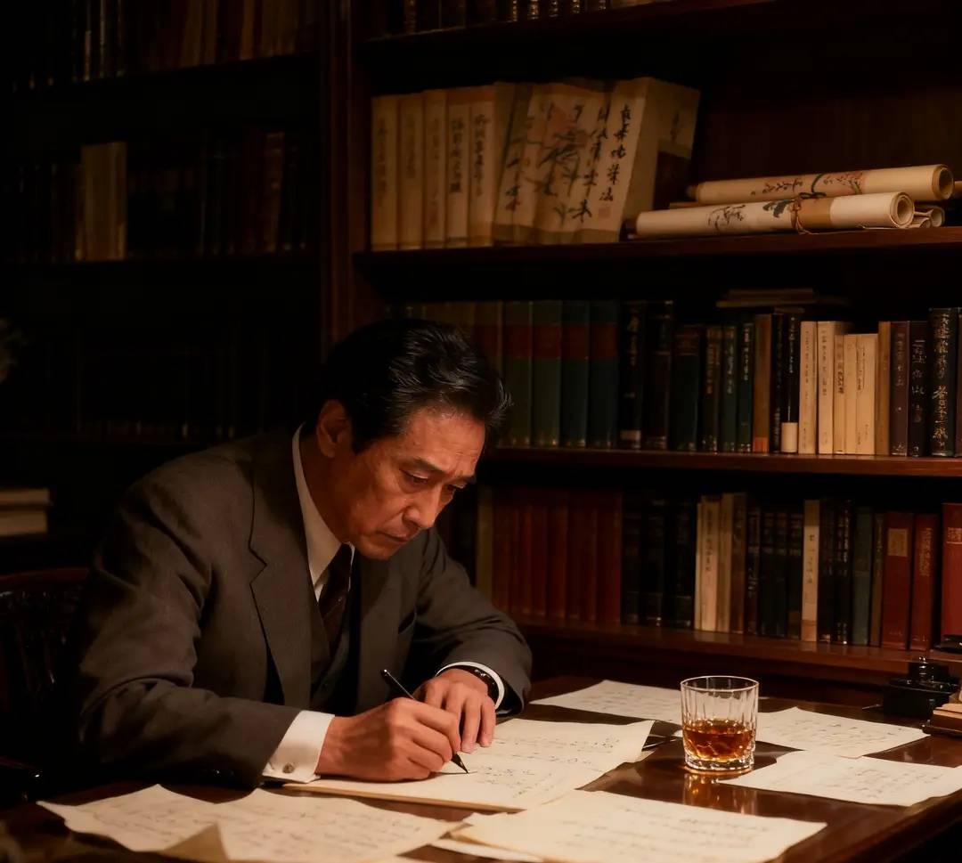 暮色渐沉,残阳的光晕透过纸拉门,在榻榻米上投下细长的影子。一位身着褪色和服的女人跪坐在廊下,手中信纸的折痕已被反复摩挲得起了毛边。山茶花在庭院里无声飘落,花瓣散在青苔上,像是不经意间打翻的胭脂盒。这个画面,定格了太宰治《斜阳》中那个时代特有的哀愁与静谧。